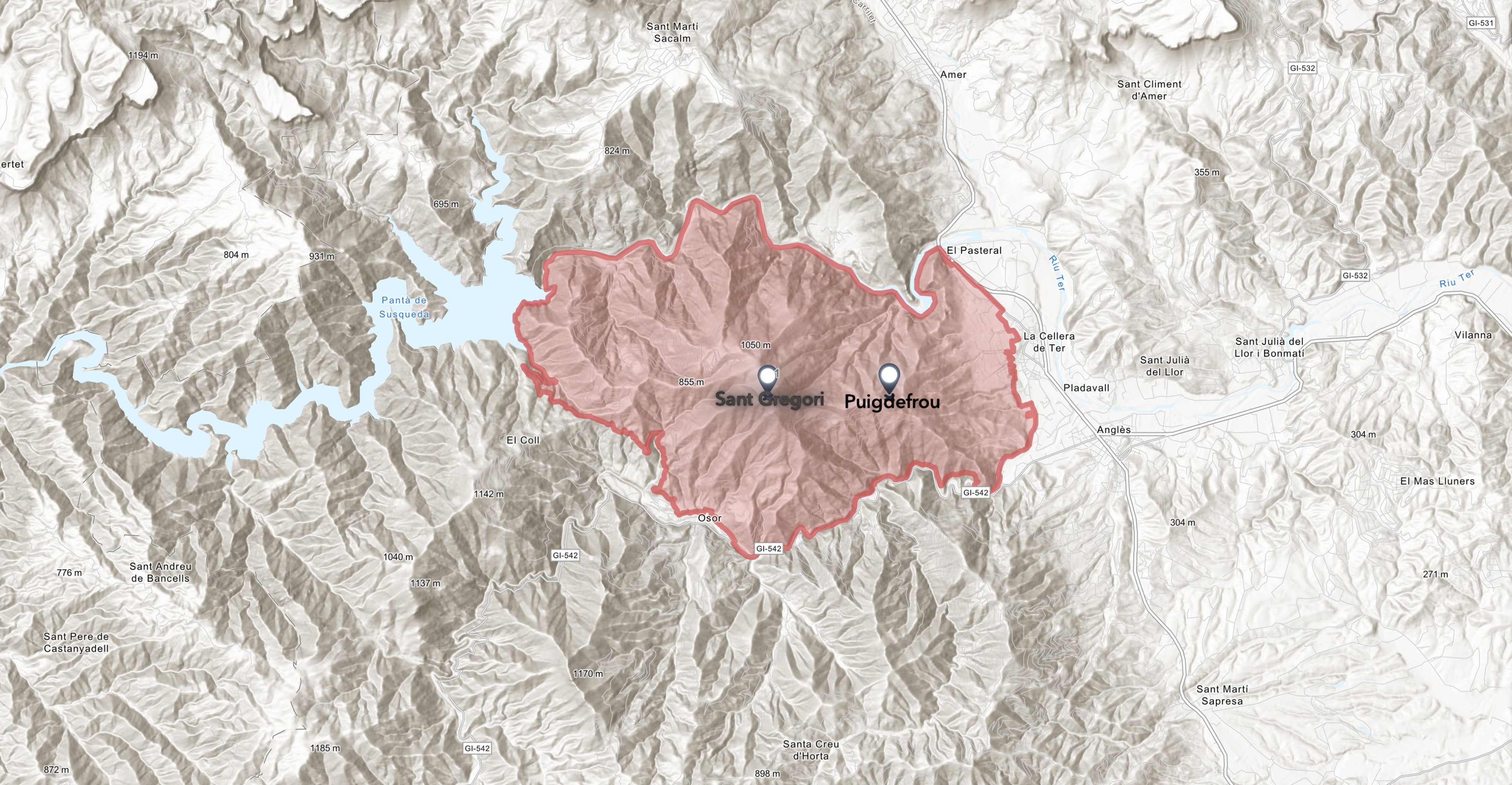 La zona es caracteritzada per un interval d’altitud comprés entre els 135 i 1.095 metres.